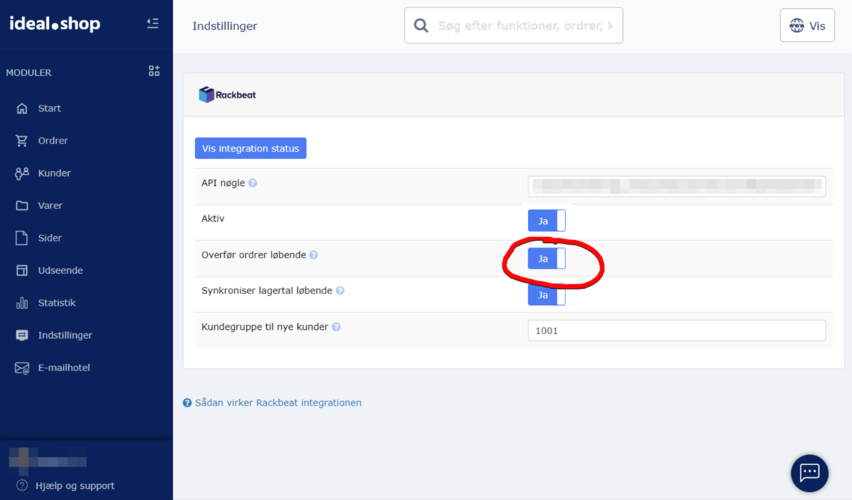 Overførsel af ordrer fra ideal.shop til Rackbeat