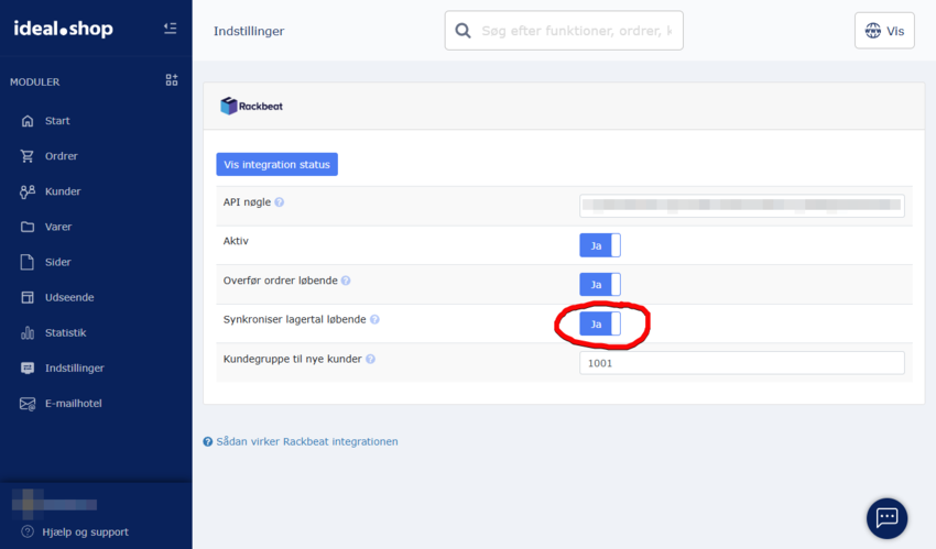Overførsel af lagertal fra Rackbeat til ideal.shop
